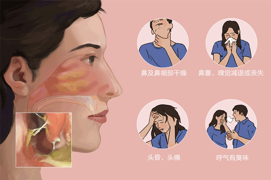 慢性鼻炎、鼻窦炎是诱发继发性萎缩性鼻炎的最常见原因。当鼻腔、鼻窦长期被脓性分泌物刺激时: