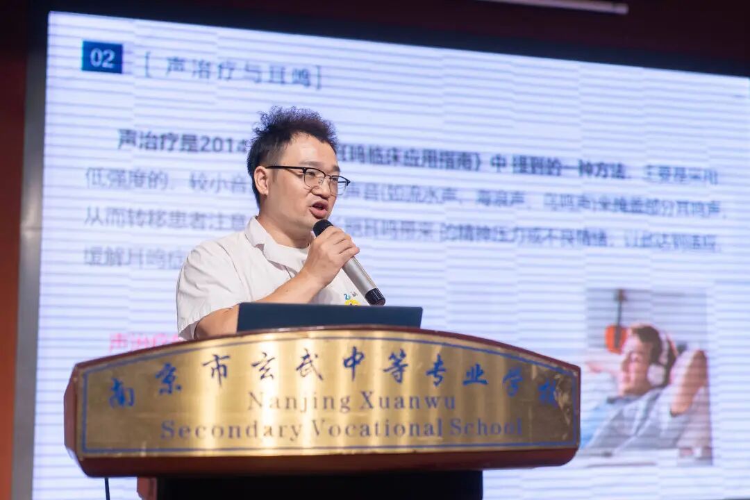 随后,南京仁品耳鼻喉专科医院听力中心负责人、国家高级助听器验配师吴玮进一步用“恶性循环”解释耳鸣加重的原因:“耳鸣引发关注,关注导致情绪焦虑,焦虑又会加重耳鸣。”他提出,声治疗能打破这一循环——基础声治疗用雨声、鸟声等自然声音转移注意力,高级声治疗则根据个人听力数据生成个性化声音;而助听器不仅能改善听力,还能降低“信噪比(信号与干扰加噪声比)”,减少对耳鸣的关注。
