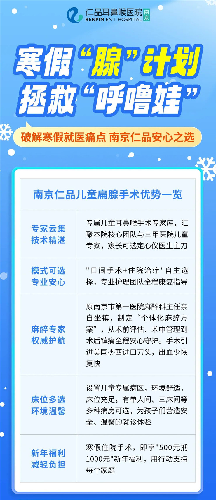 寒假儿童健康“护航行动”开启:南京仁品开通扁腺手术绿色通道,预约优先安排